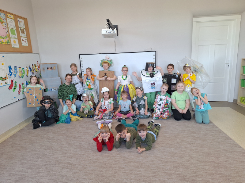 Pierwszy dzień wiosny powitaliśmy z przytupem! Dzieciaki wraz z wychowawcami przeprowadzili w swoich salach wiosenne zajęcia dydaktyczne, podczas których zakładali swoje wiosenne kąciki przyrodnicze, rozwiązywali interaktywne zadania o tematyce wiosennej czy przygotowywali wiosenne prace plastyczne. Wszyscy jednak z niecierpliwością czekali na gwóźdź programy, czyli Pokaz Mody Ekologicznej. Dzieci zaprezentowały wykonane w domu z rodzicami kostiumy, do przygotowania których wykorzystano kartony, butelki, worki, nakrętki, opakowania i wiele, wiele innych. Po pokazie grupy udały się na spacery, aby na własne oczy sprawdzić, czy wiosna naprawdę jest już wśród nas...;)