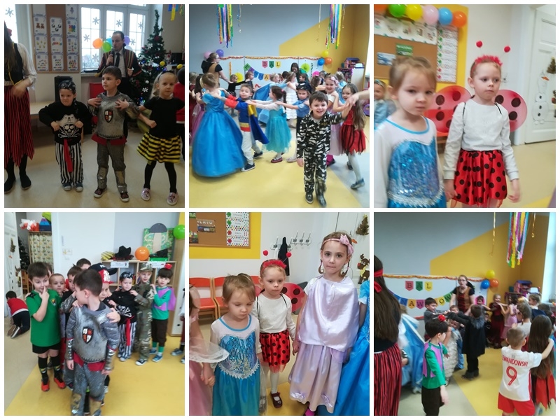 Bal Karnawałowy - 9 i 10 stycznia w przedszkolu, jak co roku w karnawale, odbył się Bal. Dzieci przebrane za bohaterów znanych bajek, bawiły się przy rytmach samby, "Kaczuch" i innych przebojów znanych dzieciom. Na tę wyjątkową okazję zaprosiliśmy do prowadzenia balu panią Kingę i pana Szymona, którzy zachęcali wszystkich do tańca przygotowaną muzyką, zorganizowali kilka zabaw oraz konkursów. Wspólna zabawa przyniosła nam wiele radości.