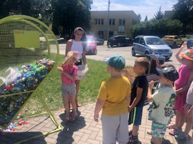 W ostatni dzień roku szkolnego tj. 24 czerwca grupa „Myszki”, „Stokrotki” i „Żabki” udała się pod Centrum Kultury „Karolinka”, gdzie wrzuciła do „Serduszka” zebrane kolorowe nakrętki. W ten sposób kolejny raz włączyliśmy się do akcji charytatywnej wspierając dzieci, które na co dzień walczą z poważnymi problemu zdrowotnymi. Na zakończenie życzymy Wszystkim wesołych, spokojnych i słonecznych wakacji!