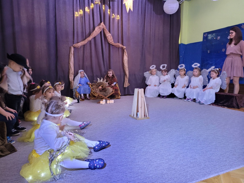 11 stycznia do najmłodszych przedszkolaków przybyli kochani dziadkowie. Dzieci przepięknie zaprezentowały przed przybyłymi gośćmi- jasełka, podczas których tańczyły, recytowały wiersze, a na koniec zaśpiewały specjalną piosenkę-,,Babciu, dziadku zrób tak".