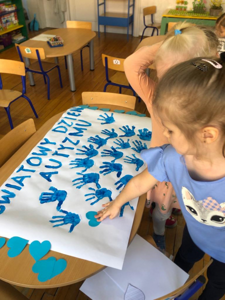Jak każdego roku, dzieci we wszystkich grupach wzięły udział w zajęciach związanych z obchodami Światowego Dnia Świadomości Autyzmu. Przedszkolaki oglądały film pt. "Autyzm", który pomógł im zrozumieć, w jaki sposób osoby w spektrum autyzmu odbierają otaczający ich świat. Dzieci brały udział w zajęciach ruchowych, podczas których mogły poczuć, w jaki sposób osoby autystyczne często poruszają się i odbierają otaczający ich świat, pracowały w parach, brały udział w dyskusjach, burzach mózgu i wykonywały symboliczne prace plastyczne. Kwiecień to miesiąc świadomości autyzmu - nie bądźmy w tym temacie zieloni, świećmy na niebiesko.