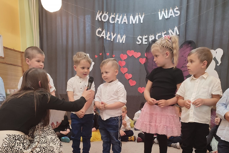 W pięknych strojach zaprezentowały bogaty program artystyczny - wierszyki, piosenki, tańce oraz życzenia dla Kochanych Rodziców. Po wspaniałych występach na twarzach rodziców można było zauważyć– wzruszenie oraz dumę ze swoich pociech. Natomiast podczas wręczania własnoręcznie wykonanych upominków całusom i uściskom nie było końca.