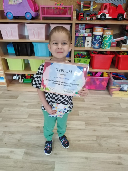 W maju w naszym przedszkolu zorganizowany został konkurs plastyczno-techniczny pt.: „Bohaterowie znanych bajek”. Dzieci miały okazję wykazać się swoją kreatywność i wykonać pacynki lub kukiełki przedstawiające ich ulubioną postać z bajki. Przedszkolaki wspólnie z rodzicami zrobiły wspaniałe prace, na wystawie pojawił się m.in. Krecik, Kicia Kocia, Czerwony Kapturek, ale także Elsa czy Bing. Wyłoniono trzech laureatów i nagrodzono wszystkich uczestników konkursu.