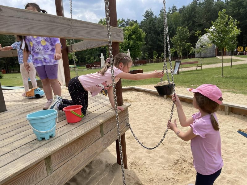14 czerwca wszystkie grupy 6-latków, a więc przyszli absolwenci wyruszyli na autokarową wycieczkę do Parku Rozrywki w Konopiskach. Dzieciaki na początek zwiedzały park, miały okazję zobaczyć, pogłaskać i nakarmić m.in. kury, kozy, alpaki, króliki i daniele. Następnie zjedliśmy grilla, a po posiłku był czas zabawy swobodnej na placu zabaw, ogromnej trampolinie i w obiekcie z wodą. Przedszkolaki nie ominęły również wspinaczki w parku linowym czy jazdy tyrolką. Wycieczka była bardzo udana i wszystkie dzieci w doskonałych nastrojach wróciły do przedszkola.