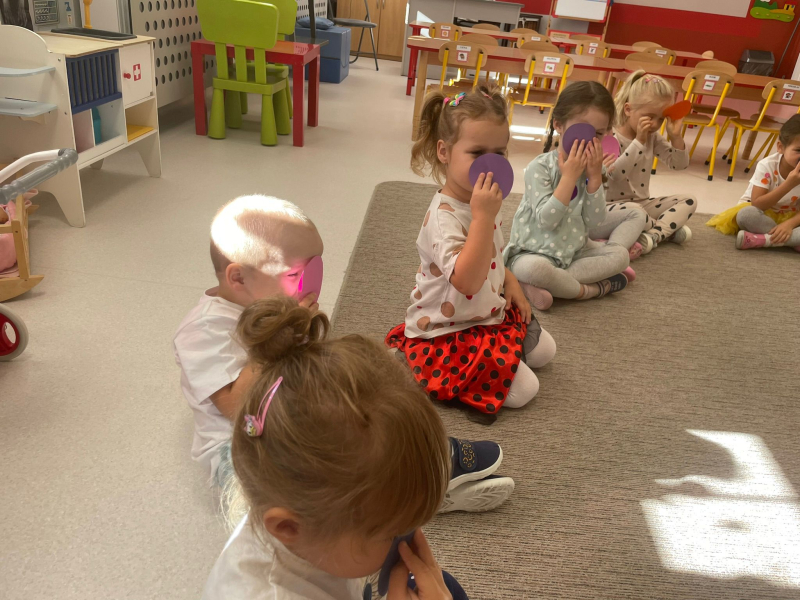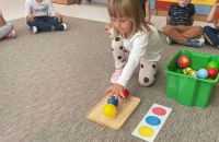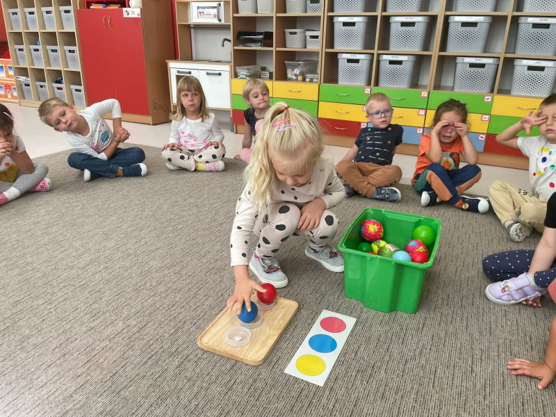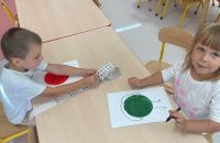 - "Ułóż kropkę" - zabawa utrwalająca znajomość kolorów,
