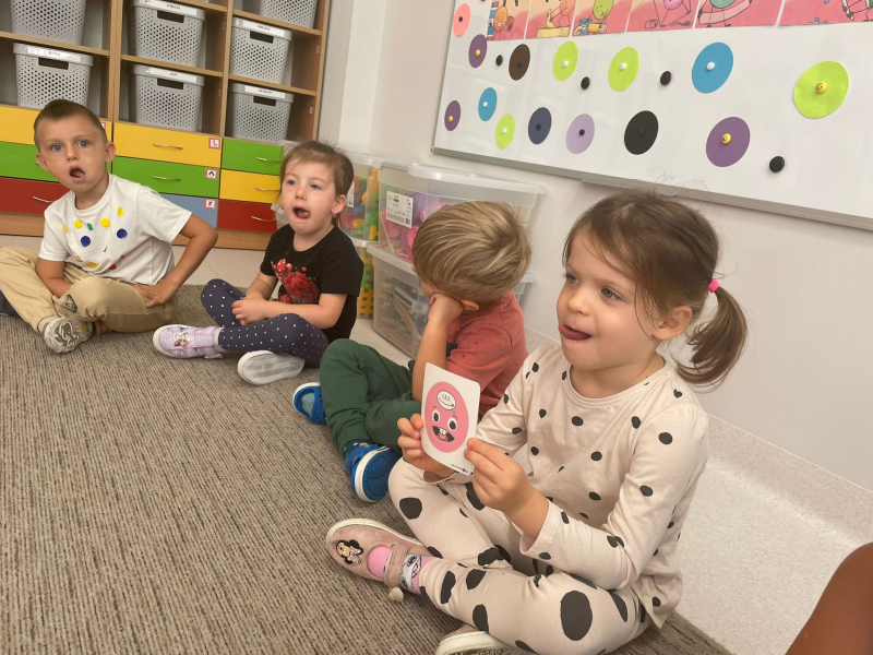 - "Kropkowa gimnastyka buzi i języka" - czyli usprawniania narządów mowy,