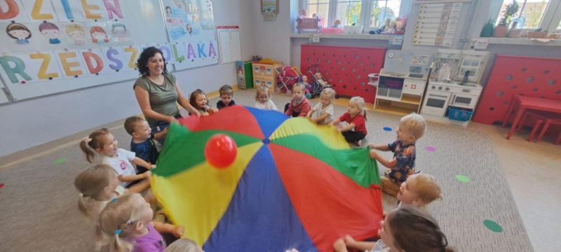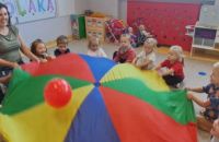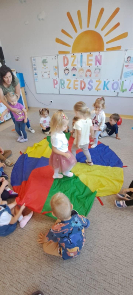 W DZIEŃ PRZEDSZKOLAKA  "nasze Słoneczka", miały okazję wziąć udział w licznych zabawach z chustą animacyjną. Zostały zaproszone również do zabawy, która miała na celu rozwinąć ich spostrzegawczość oraz wyobraźnię, wykorzystując latarkę do poszukiwania ukrytych obrazków przez podświetlanie kart od tyłu. Na zakończenie świętowania każdy PRZEDSZKOLAK otrzymał medal.