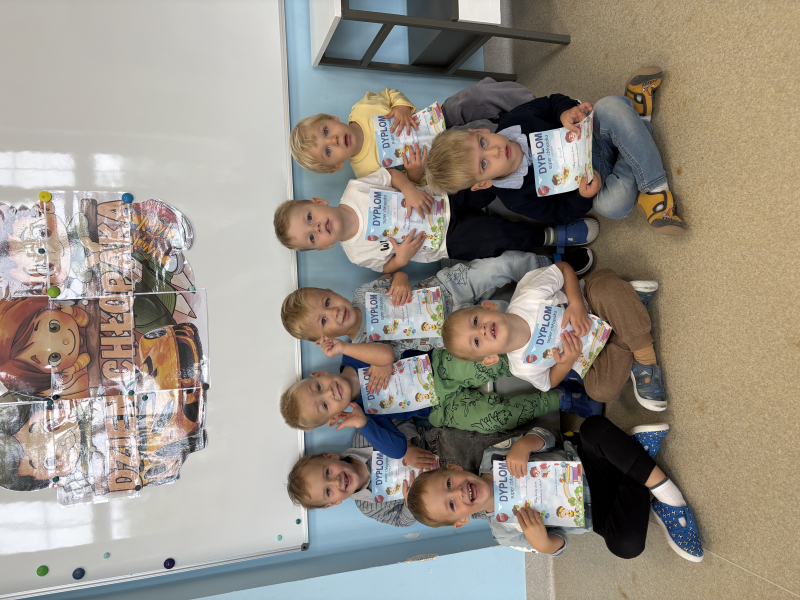 Koniec września obfitował w wiele ciekawych wydarzeń. Podczas zajęć dotykaliśmy, wąchaliśmy i próbowaliśmy jesiennych owoców i warzyw, a także bawiliśmy się listkami, miesiąc zakończyliśmy świętowaniem ,,Dnia chłopaka”.