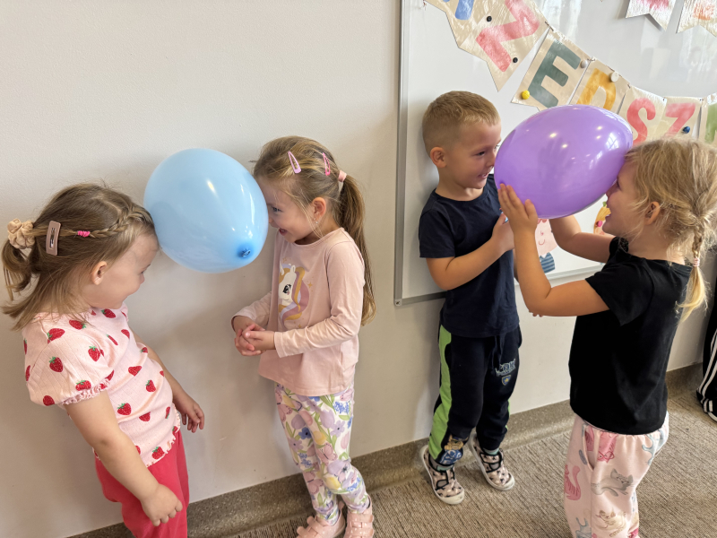 W piątek w naszym przedszkolu świętowaliśmy dziś Dzień Przedszkolaka! Z tej okazji gościliśmy dzieci z grupy Myszki. Wspólnie wybraliśmy się na plac zabaw, gdzie czekało nas mnóstwo radości i wesołych aktywności. Po powrocie uczestniczyliśmy w zabawach muzyczno–ruchowych z balonikami, które wywołały wiele uśmiechów. Następnie każdy przedszkolak mógł wykazać się kreatywnością, tworząc z balonów kolorowe potworki. Na zakończenie dnia wszyscy otrzymali pamiątkowe medale i drobne upominki. Był to wyjątkowy czas pełen śmiechu, tańca, zabawy i radosnych wspomnień – dokładnie taki, jakiego pragnie każdy przedszkolak!