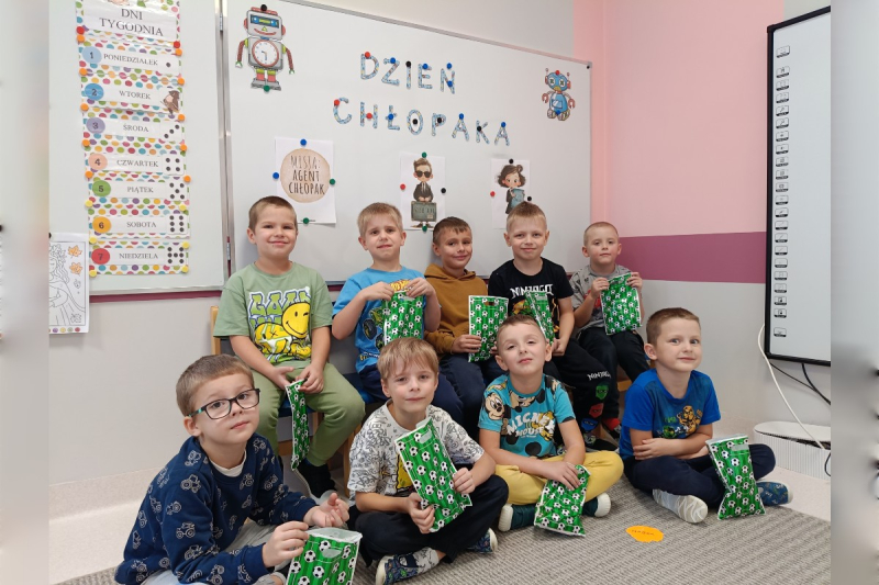 Na zakończenie dnia dziewczynki złożyły chłopcom serdeczne życzenia i wręczyły im drobne upominki, które wywołały wiele uśmiechów.