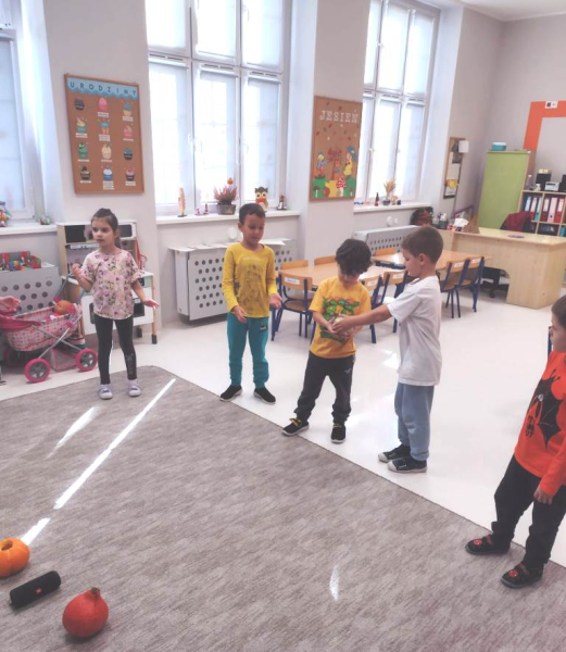 Pod koniec października w naszej grupie świętowaliśmy Dzień dyni. Dzieci mogły wziąć udział w ciekawych zabawach ruchowych ćwicząc swoje zmysły. Za pomocą dłoni rozpoznawały rodzaje dyni ukryte w pojemnikach oraz dzięki zmysłom wzroku i węchu wykonały eksperyment z "wybuchającą dynią". Przedszkolacy z naszej grupy ćwiczą również umiejętności czytelnicze poprzez dopasowywanie takich samych sylab znajdujących się na papierowych dyniach. Na zakończenie zajęć "Mrówki" wykonały jesienną krzyżówkę utrwalając poznane litery. To był aktywny dzień!