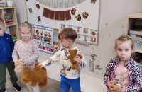 W dniu 25.11. obchodziliśmy Dzień Pluszowego Misia. Dzieci przyszły do przedszkola ze swoimi ulubionymi pluszakami, a każdy miś stał się bohaterem dnia. Były wspólne tańce i piosenki o misiach, ale także zadania i historia powstania tej najpopularniejszej przytulanki. Pluszowi przyjaciele towarzyszyli dzieciom w każdej aktywności, a cały dzień stał się okazją do integracji i dzielenia się radością.