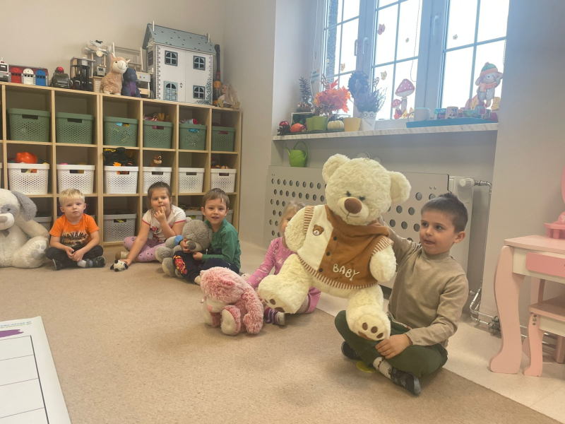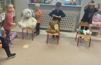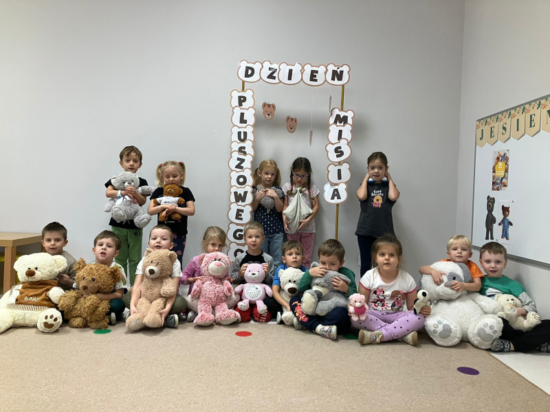 25 września obchodziliśmy Dzień Pluszowego Misia. Z tej okazji dzieci przyniosły do przedszkola swoje ukochane pluszaki. Na zajęciach przedstawiły swoje misie, a następnie wspólnie przywitaliśmy się piosenką - "Do przedszkola przyszedł miś". W czasie zajęć wykonywaliśmy różne misiowe zadania m.in. kodowaliśmy misie ze względu na wielkość i kolor, układaliśmy literkowe misie, a zwieńczeniem zajęć była zabawa "Nakarm misia", która wprowadziła mały element rywalizacji. Cały dzień upłynął nam w miłej atmosferze, a dzieciaki zgodnie stwierdziły, że pluszowy miś to prawdziwy przyjaciel przedszkolaków.