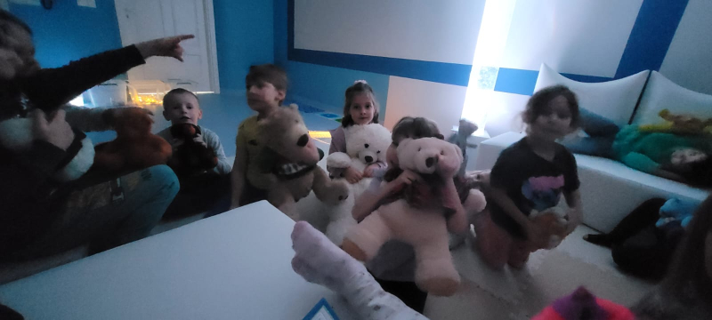W grupie Stokrotek obchodziliśmy dziś Dzień Pluszowego Misia. Towarzyszyły nam praktykantki z liceum ogólnokształcącego, które obserwowały przebieg zajęć. Dzieci pomagały „wyleczyć” chorego misia, ćwicząc przy tym umiejętności matematyczne. Poznały także bajkę o Złotowłosej i trzech misiach, a podczas części sensorycznej z zaangażowaniem szukały niedźwiedzich łapek ukrytych w hydrożelowych kuleczkach. Na zakończenie przenieśliśmy się do ulubionej sali „Zajączków”, gdzie odbyła się relaksacja przy czytanej przez nauczyciela bajce.