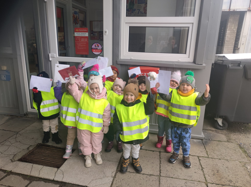 W tym tygodniu nasze przedszkolaki wyruszyły na wyjątkową wycieczkę na pocztę. Każde dziecko samodzielnie wysłało list do Świętego Mikołaja, który przygotowało w domu wraz z rodzicami. Zanim udaliśmy się na pocztę, rozmawialiśmy o tym, jak wygląda wysyłanie listów – co jest potrzebne, jak poprawnie napisać adres i gdzie przykleić znaczek. Dzięki temu dzieci mogły w praktyce zobaczyć, jak funkcjonuje poczta i jak ich własne listy trafiają do adresata. Wycieczka była nie tylko pouczająca, ale też pełna radości i świątecznej atmosfery. To doświadczenie pozwoliło naszym przedszkolakom poczuć się jak prawdziwi listonosze i sprawiło, że wysyłanie listów stało się prawdziwą przygodą!