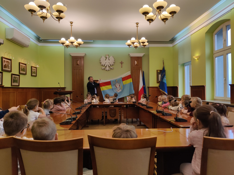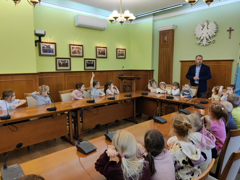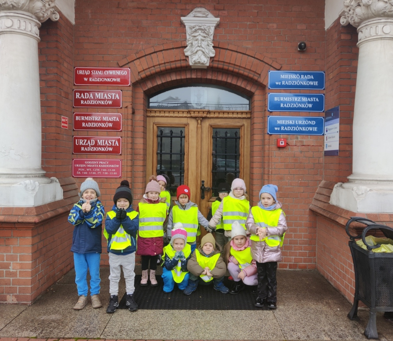 Dzieci z grup Żabki, Biedronki i Jeżyki wybrały się do Urzędu Miasta w Radzionkowie, gdzie mogły zobaczyć budynek, zasiąść na sali plenarnej, dowiedziały się także jaki święty jest patronem miasta i szukały wizerunku Św. Wojciecha w różnych miejscach budynku. Przedszkolaki odwiedziły również, w swoim gabinecie Pana burmistrza, gdzie mogły zadać pytania lub zgłosić jakąś sprawę, jako mieszkańcy Radzionkowa.