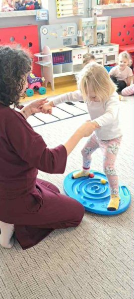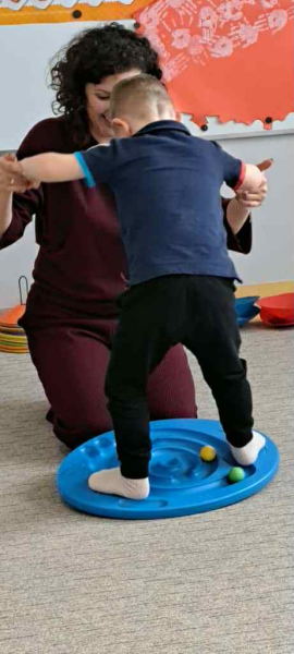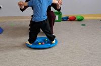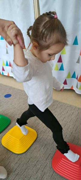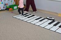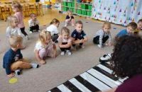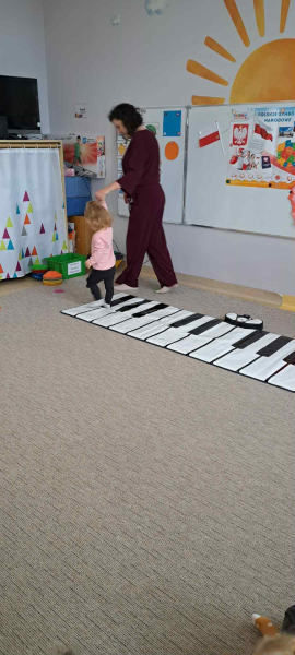 W grupie Słoneczka odbyły się zajęcia, podczas których dzieci rozwijały umiejętność utrzymywania równowagi, ćwicząc na desce do balansowania oraz pokonując różnorodny tor przeszkód. Zwieńczeniem aktywności były zabawy z pianinem dywanowym, dzięki którym przedszkolaki mogły rozwijać zmysł słuchu, kreatywność i pamięć. Zajęcia przyniosły dzieciom wiele radości oraz satysfakcję z odkrywania nowych możliwości ruchowych i muzycznych.