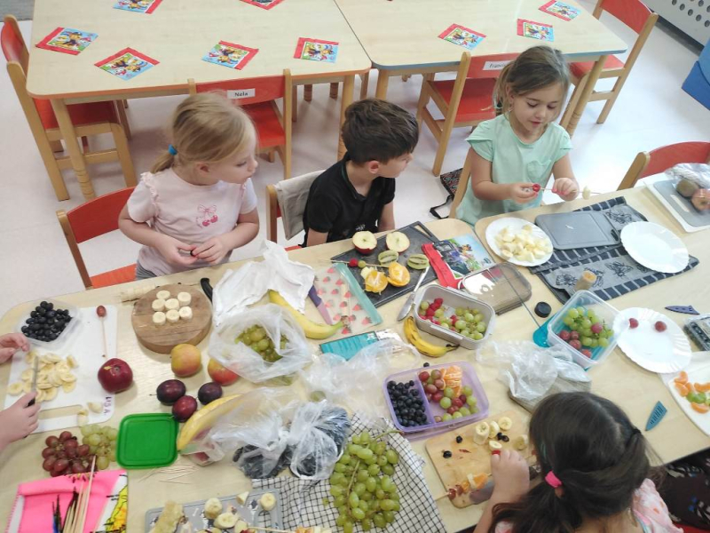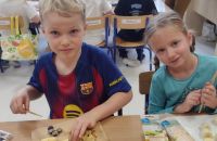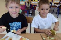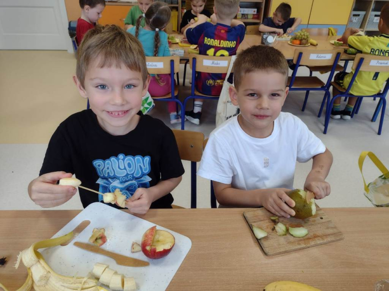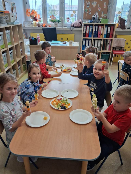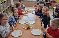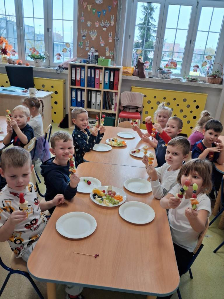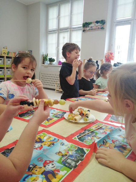 Kolejnym zadaniem realizowanym na łamach ww. projektu było zagadnienie pt: "Co jest zdrowe i dlaczego jest tak ważne?". Dzieci z grup "Jeżyki", "Mrówki" i "Żabki" przygotowały samodzielnie szaszłyki owocowe, a następnie przyszedł czas na ich degustację.