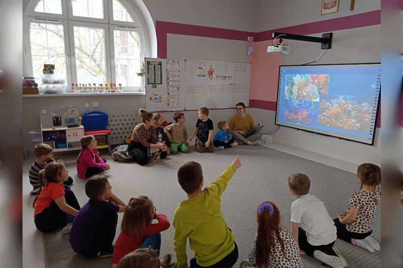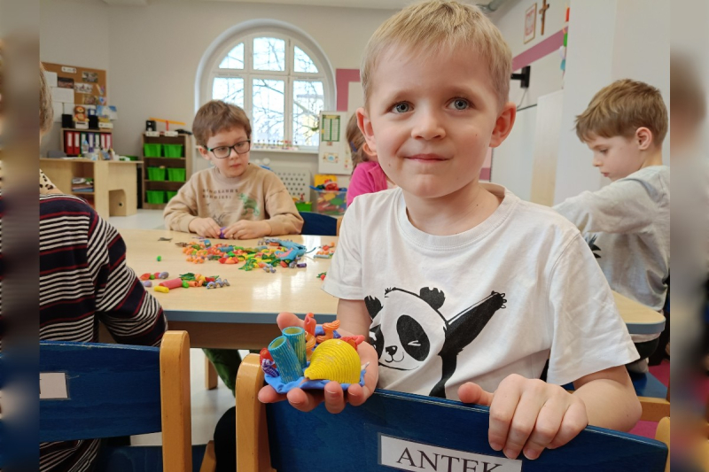 W dniach 12–15 stycznia bohaterką tygodnia w naszym przedszkolu była Milenka. Był to czas pełen radości, wspólnej zabawy i ciekawych doświadczeń. Do kącika bohatera Milenka przyniosła swoją ulubioną grę oraz małpkę–przytulankę, które od razu wzbudziły duże zainteresowanie wśród dzieci. Przedszkolaki chętnie bawiły się razem z naszą bohaterką, integrując się i spędzając miło czas. Czytaliśmy ciekawe opowiadanie o Milence, a także oglądaliśmy album ze zdjęciami, dzięki któremu mogliśmy lepiej poznać Milenkę, jej zainteresowania oraz jej bliskich. W czwartek odwiedziła nas mama Milenki – Pani Joanna, która jest biologiem. Opowiedziała dzieciom, na czym polega jej praca oraz w niezwykle interesujący sposób przybliżyła temat rafy koralowej. Zaprezentowała przepiękne zdjęcia rafy, pokazała ilustracje jej mieszkańców i podzieliła się wieloma ciekawostkami ze świata podwodnej przyrody. Dzieci miały również okazję obejrzeć modele zwierząt żyjących w oceanie. Podczas zajęć plastycznych tworzyliśmy modele rafy koralowej z piankoliny, które ozdabialiśmy kolorowym makaronem i innymi dekoracjami. Powstały prawdziwe, małe dzieła sztuki. Na zakończenie tygodnia nasza bohaterka Milenka otrzymała pamiątkowy dyplom oraz medal. Dziękujemy Milence i jej mamie za wspaniały tydzień pełen inspirujących przeżyć i nowych doświadczeń!