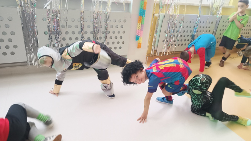Podczas balu dzieci „odwiedzały” różne planety, biorąc udział w radosnych zabawach muzyczno-ruchowych. Każda planeta kryła nowe wyzwania – taneczne kroki, ruchowe zadania i muzyczne niespodzianki, które rozwijały wyobraźnię, koordynację oraz współpracę w grupie. Nie zabrakło śmiechu, tańca i wspólnej radości. Zapraszamy do zapoznania się z fotorelacją z imprezy.