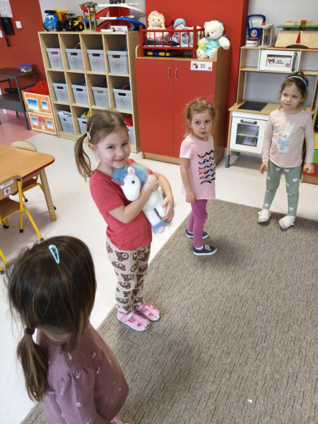 W styczniu grupa „Biedronki” poznała przedszkolną maskotkę - Gucia jednorożca. Razem z Guciem dzieci wysłuchały opowiadania „Gucio uczy się wybaczać”. Dzieci już wiedzą, ze warto WYBACZAĆ podczas zabawy ruchowej „Proszę, dziękuję, przepraszam” utrwalały poznane gesty umowne przy kolejnej zabawie wskazały zdania prawdziwe i fałszywe, a na koniec wykonały pracę plastyczną „Serduszko”. Zapraszamy do fotorelacji.