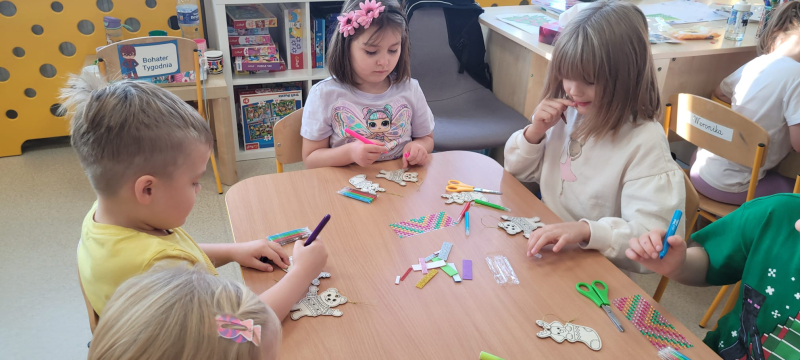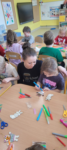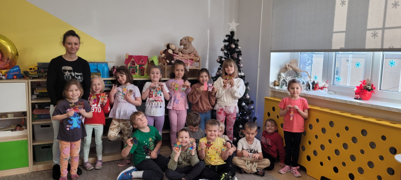 Na zakończenie spotkania mama Mileny wspólnie z dziećmi przygotowała piękne, kolorowe bombki na choinki. Było to bardzo twórcze i radosne zajęcie, które sprawiło wszystkim dużo frajdy.