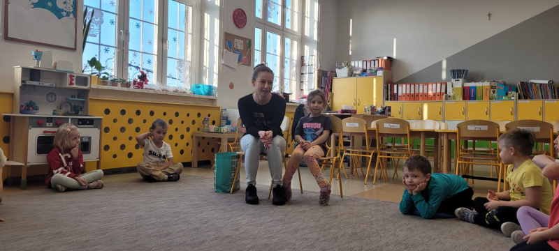 Wyjątkowym wydarzeniem była wizyta mamy Mileny, która opowiedziała dzieciom o swojej pracy oraz swoich zainteresowaniach. Dzieci słuchały z dużym zaciekawieniem i chętnie uczestniczyły w rozmowie.