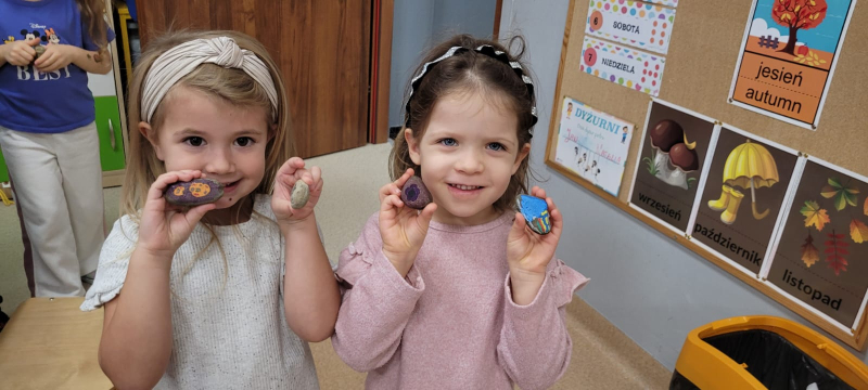 „Ale to była frajda! Dzieci z grupy Stokrotki wzięły udział w „Kamyczkowym wyzwaniu” – własnoręcznie ozdobiły kolorowe kamyczki, a potem rozłożyły je w różnych zakątkach naszego miasta. Następnie zaprosiły dzieci z innych grup do wspólnej zabawy i poszukiwań. Każdy, kto znalazł kamyczek, mógł wybrać sobie nagrodę. Radości, emocji i uśmiechów było co niemiara!
