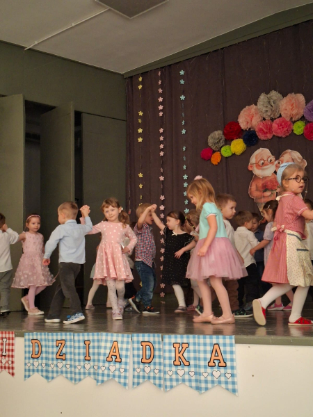 Dnia 21 stycznia w naszym przedszkolu odbyła się uroczystość z okazji Dnia Babcii Dziadka. W wydarzeniu uczestniczyły dzieci z grup: „Myszki” oraz „Motylki”. Podczas spotkania dzieci przygotowały dla swoich ukochanych dziadków wiele niespodzianek. W programie znalazły się tańce oraz piosenki, które dzieci prezentowały z wielkim zaangażowaniem i radością. Każde dziecko miało również swoją krótką kwestię do powiedzenia, w której mogło osobiście wyrazić swoje uczucia i podziękowania dla babci i dziadka. Po występach dzieci wręczyły swoim dziadkom drobne upominki. Następnie wszyscy goście zostali zaproszeni na słodki poczęstunek przygotowany przez rodziców, co pozwoliło na wspólne rozmowy w miłej, rodzinnej atmosferze. Cała uroczystość była wyjątkowym czasem pełnym uśmiechów, radości i serdecznej atmosfery, który na długo pozostanie w pamięci dzieci, dziadków i wszystkich uczestników.