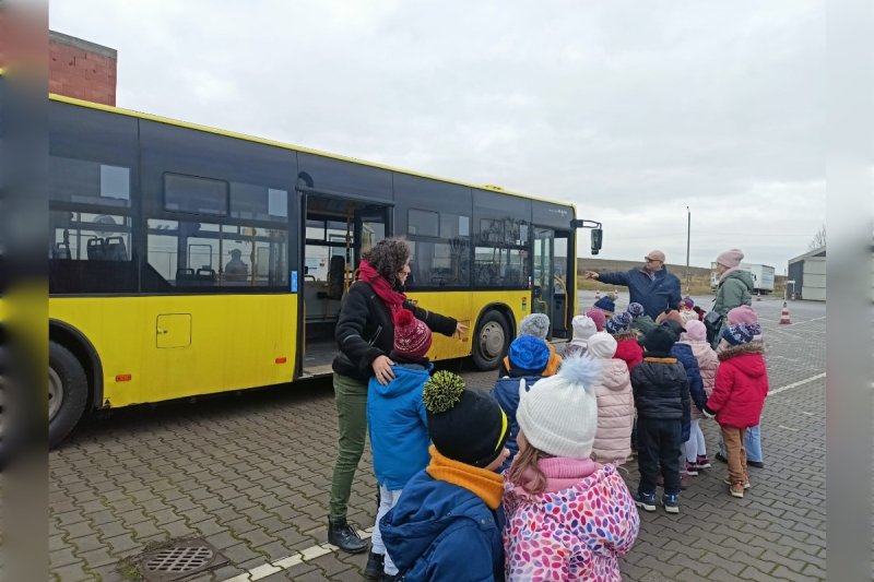 Dużym zainteresowaniem cieszyły się także informacje o różnicach między autobusem miejskim a autokarem. Dzieci mogły zobaczyć, jak wyglądają te pojazdy, jak są wyposażone i do czego służą.