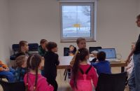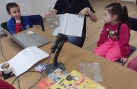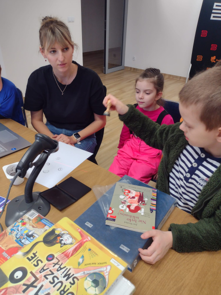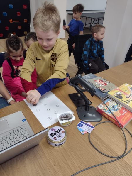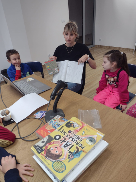 Dzieci z grup 5 i 6 - latków wzięły udział w wycieczce pieszej do nowej siedziby Miejskiej Biblioteki Publicznej w Radzionkowie. Dzieci miały okazję zobaczyć jak wygląda praca w bibliotece, a także wcielić się w rolę bibliotekarza i przejść cały proces od pojawienia się książki w bibliotece, do wypożyczenia czytelnikowi. Pani prowadząca opowiedziała również o książkach, od strony technicznej - autor, tytuł, okładka, ilustracje, a dzieci miały okazję zeskanować kody i wyszukać książki w systemie. Dzieci zwiedziły także część biblioteki przeznaczoną dla najmłodszych czytelników, a na pamiątke wizyty każdy otrzymał zakładkę do książki. Celem wizyty było zapoznanie dzieci z funkcjonowaniem biblioteki, rozwijanie zainteresowań czytelniczych oraz kształtowanie nawyku sięgania po książki.