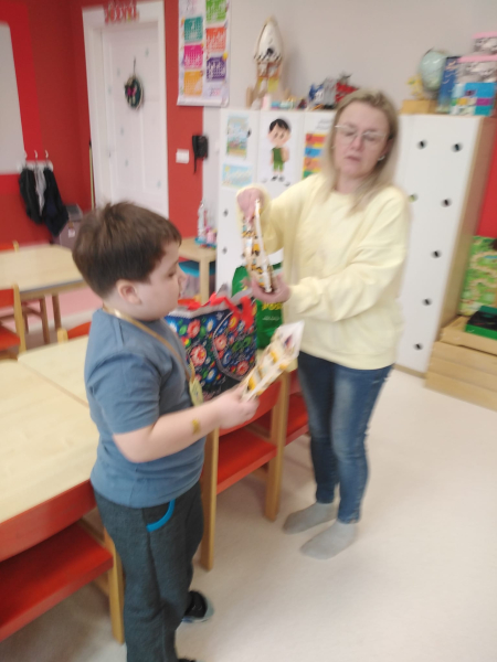 O naszym Bohaterze Tygodnia - Antku opowiedziała nam jego mama. Dowiedzieliśmy się, że Antek bardzo lubi łowić ryby, jeździć na kładzie razem z mamą i ciężarówką z tatą. Poza tym jest znawcą marek aut i potrafi nawet po zdjęciu zderzaka rozpoznać, co to za samochód. Dzieci miały okazję poczęstować się babeczkami upieczonymi przez mamę i Antka i wybrać sobie kolorowanki samochodów. Bardzo dziękujemy za miłe spotkanie.