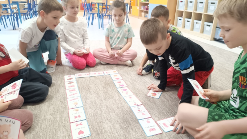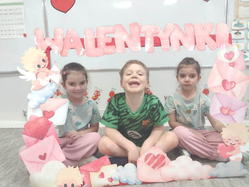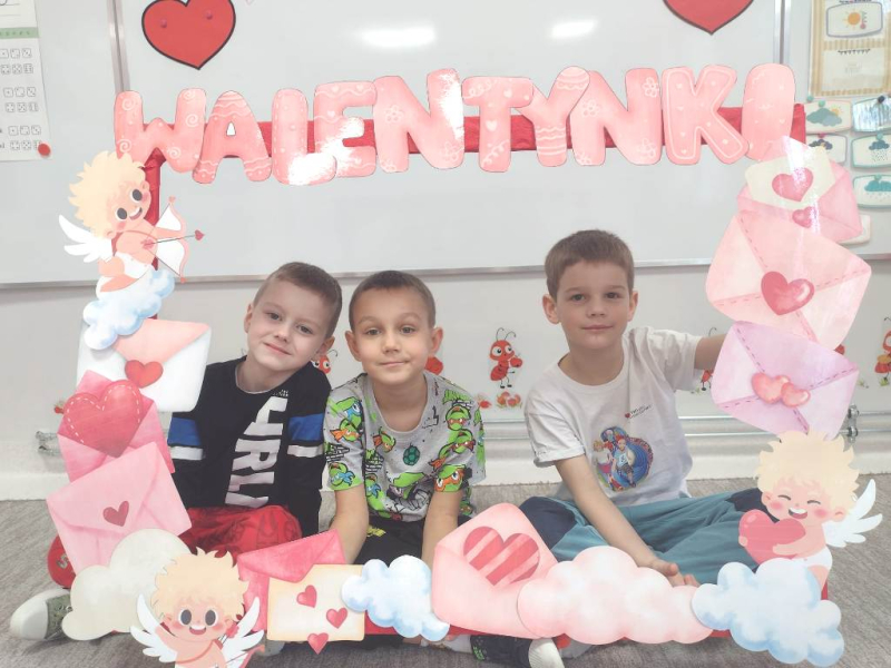 Na początku dzieci wzięły udział w zabawie dydaktycznej „Ja mam, kto ma?”, która rozwijała spostrzegawczość, koncentrację oraz umiejętność uważnego słuchania. Przedszkolaki z wielkim zaangażowaniem odczytywały swoje karty i szukały właściwych odpowiedzi. Kolejnym punktem dnia było ćwiczenie muzyczno-ruchowe z wykorzystaniem muzogramu do piosenki „Małe serce”. Dzieci słuchały utworu, śledziły symbole w muzogramie i wykonywały odpowiednie ruchy w rytm muzyki. Było to doskonałe połączenie zabawy z rozwijaniem poczucia rytmu i koordynacji. Nie mogło zabraknąć również pracy plastycznej. „Mrówki” z ogromnym zaangażowaniem tworzyły piękne, kolorowe walentynki dla swoich bliskich. Dzieci wykazały się kreatywnością i starannością, wkładając w swoje prace wiele serca. Na zakończenie wszyscy chętnie pozowali do pamiątkowych zdjęć na specjalnie przygotowanej serduszkowej ściance, która stała się wyjątkowym tłem dla pełnych radości fotografii.