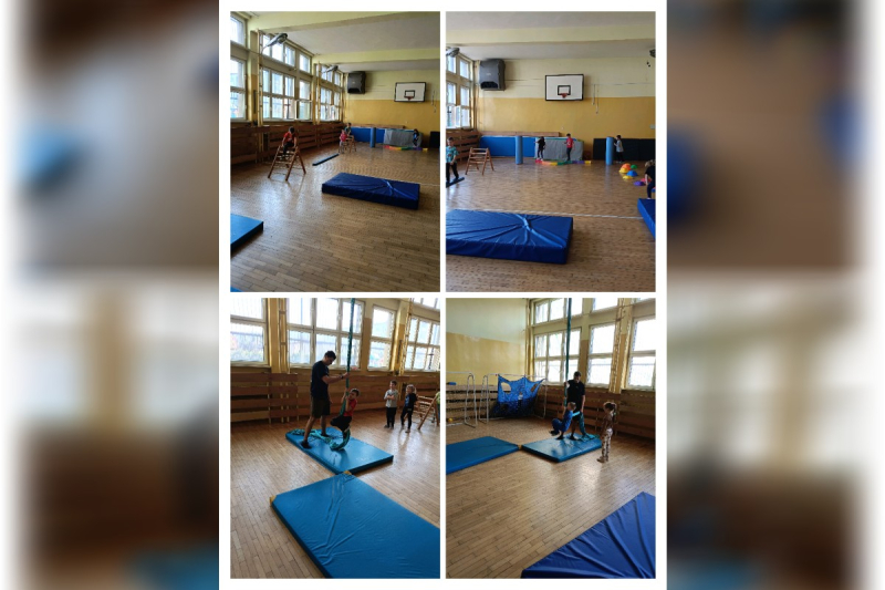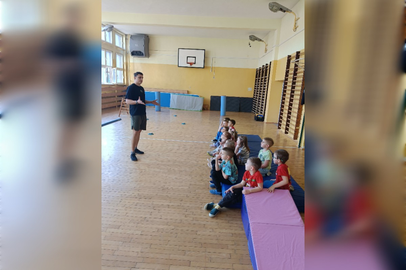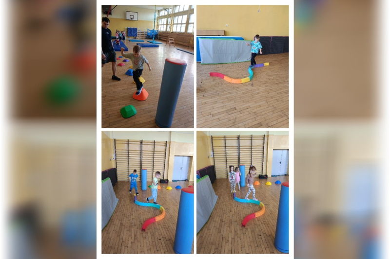 Wyjątkowym wydarzeniem była także wizyta gościa bohatera tygodnia – wujka Karola, który prowadzi zajęcia sportowe dla dzieci i pracuje jako trener personalny. Podczas spotkania w naszej sali gimnastycznej przygotował dla przedszkolaków ciekawe zabawy ruchowe oraz tor przeszkód. Dzieci z ogromnym zaangażowaniem pokonywały kolejne zadania, ćwicząc sprawność, równowagę i koordynację ruchową.