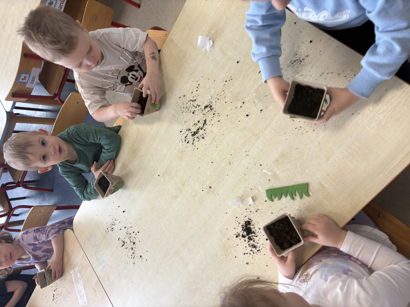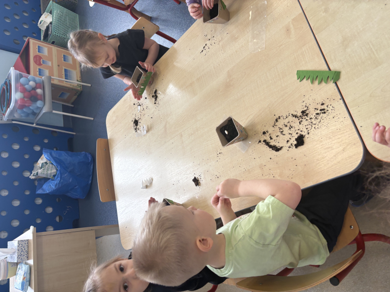 W trakcie ubiegłego tygodnia ,,Chmurki” bawiły się w ogrodników. Na naszym przedszkolnym parapecie posadziliśmy swoje fasolki, wysialiśmy pomidory, paprykę i ogórki oraz posadziliśmy tulipany i hiacynty.