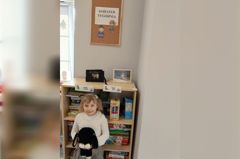 Oliwka chętnie dzieliła się z nami swoim króliczkiem oraz grą, które przyniosła do kącika bohatera tygodnia.