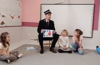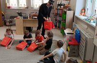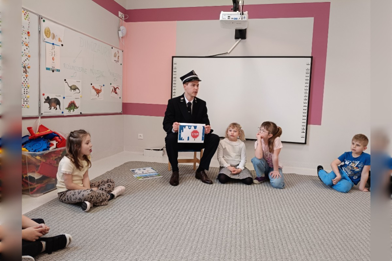 Wyjątkową atrakcją była wizyta gościa specjalnego – wujka Tomka, który pracuje na kolei. Opowiedział dzieciom o zawodach takich jak maszynista, konduktor oraz zawiadowca stacji. Przedszkolaki z dużym zainteresowaniem słuchały również o podróżowaniu pociągami oraz o zasadach bezpieczeństwa na kolei.