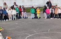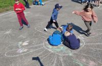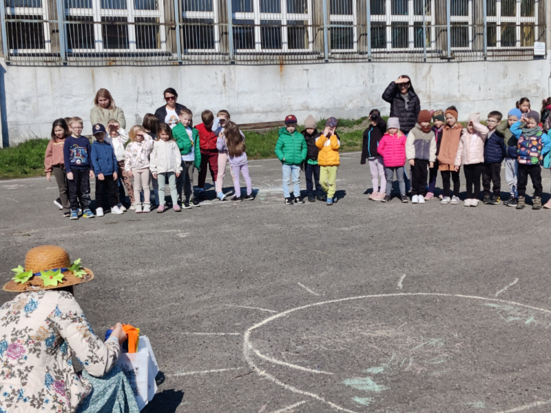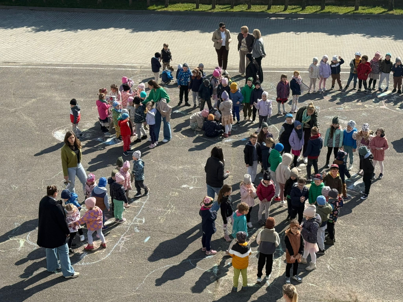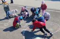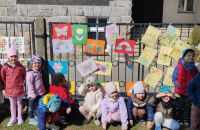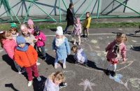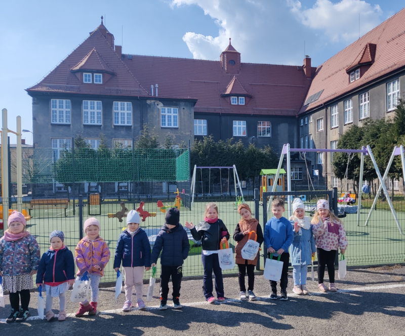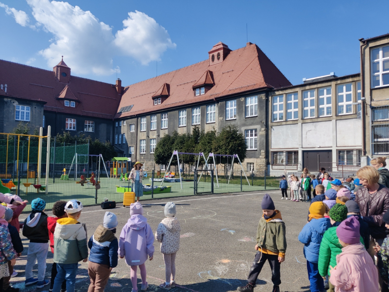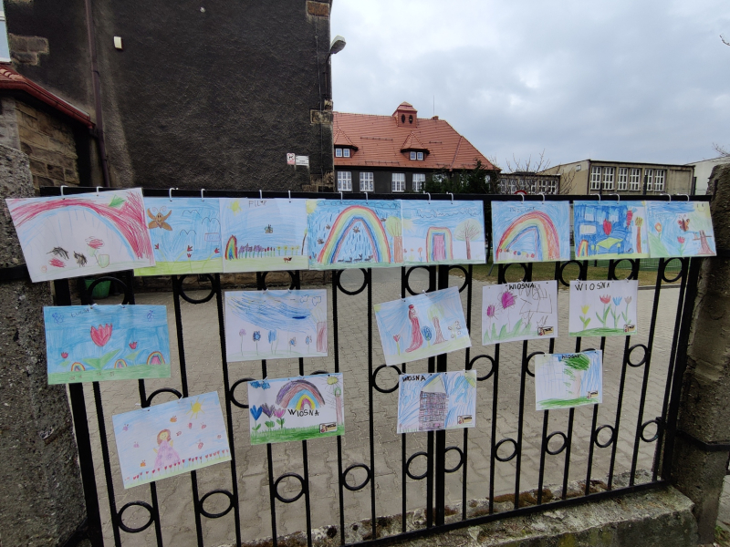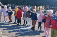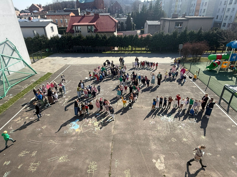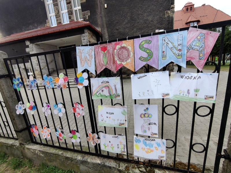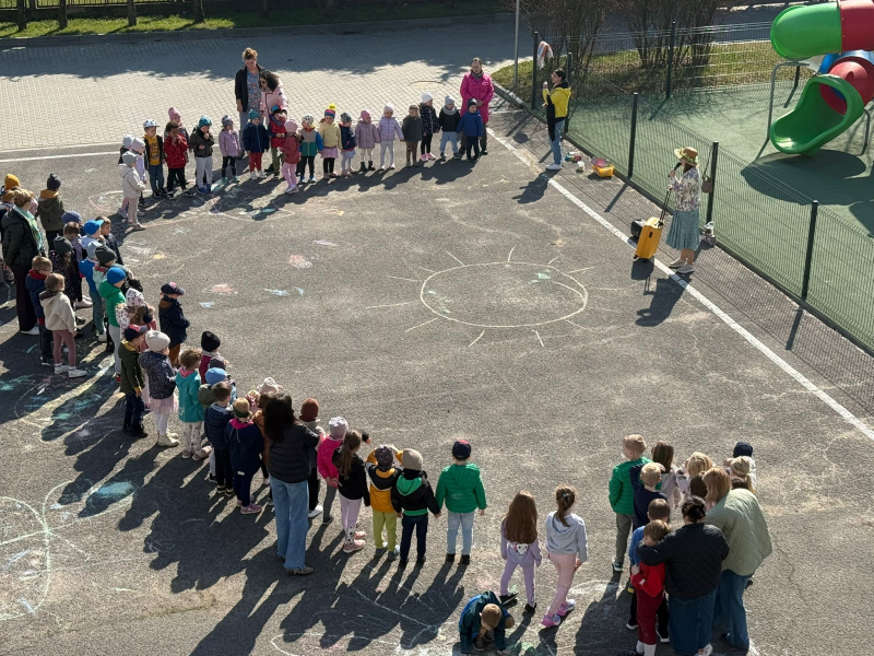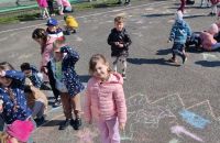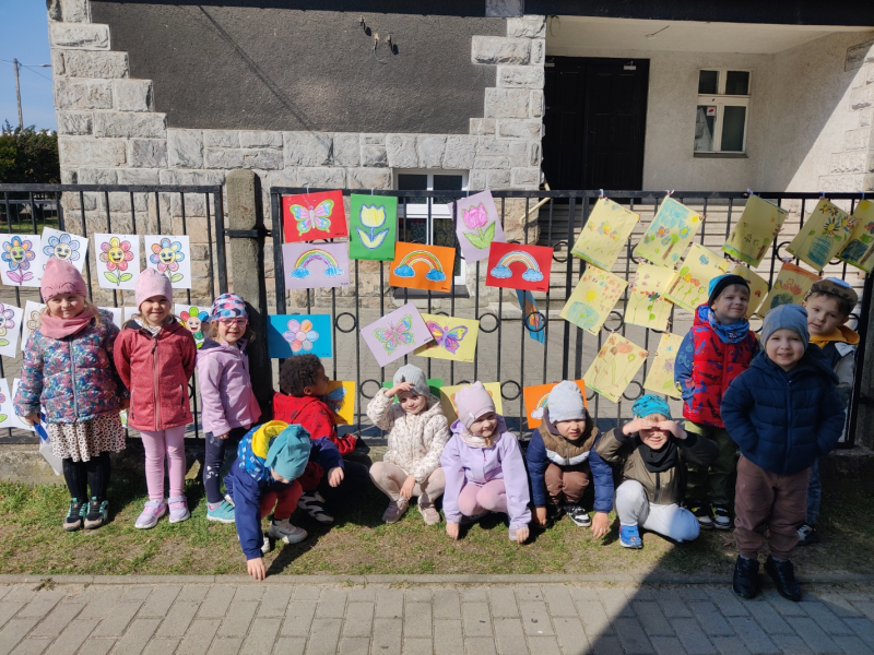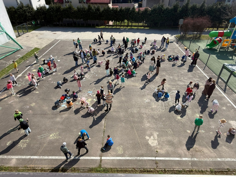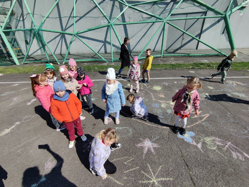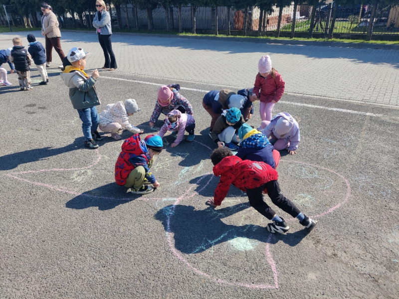 Zabawy przy wiosennych melodiach wprowadziły wszystkich w radosny, pełen energii nastrój, a wspólne działania na świeżym powietrzu sprawiły, że wokół przedszkola zrobiło się naprawdę wiosennie. Boisko ozdobiły barwne rysunki wykonane kredą, a płot – własnoręcznie przygotowane przez dzieci obrazki. To był dzień pełen koloru, kreatywności, wiosennego entuzjazmu i ekologicznych inspiracji.