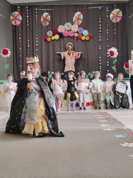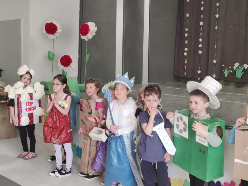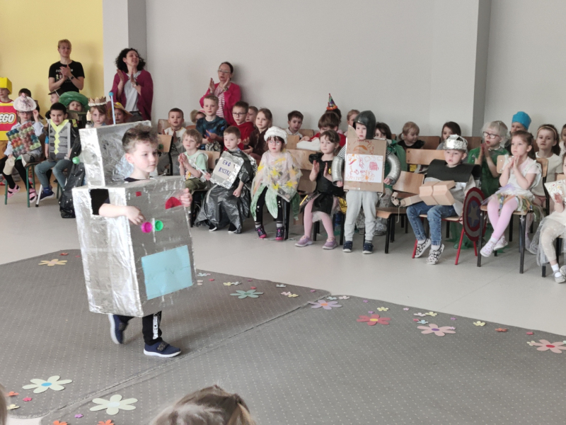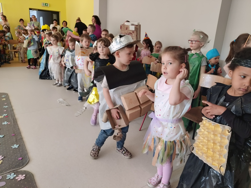 Każdy strój był inny, a dzieci z dumą prezentowały swoje ekologiczne projekty wykonane wspólnie z rodzicami, pokazując, że recykling może być nie tylko ważny, ale też twórczy i pełen zabawy. Była to świetna okazja, by przypomnieć, jak istotne jest dbanie o naszą planetę.