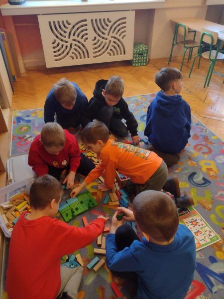 5 marca dzieci z naszej grupy odwiedziły Szkołę Podstawową nr 1 w Radzionkowie, gdzie odbywał się dzień otwarty. Była to doskonała okazja, aby przedszkolaki mogły zobaczyć, jak wygląda szkoła od środka i choć na chwilę poczuć się jak prawdziwi uczniowie.
