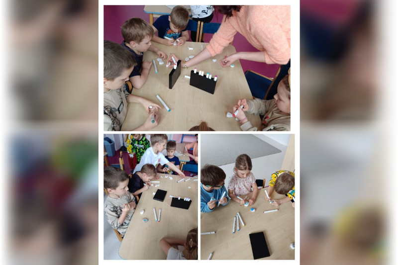 Antek przyniósł do naszego kącika swoje ulubione zabawki – grę planszową o pociągach oraz zestaw samochodów Hot Wheels. Chętnie dzielił się nimi z kolegami i koleżankami, a wspólna zabawa sprawiła wszystkim wiele radości.