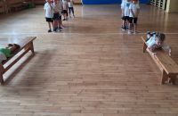W tym tygodniu dzieci z naszej grupy pierwszy raz wybrały się na zajęcia gimnastyczne na sali, oto krótka relacja z ćwiczeń.