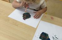 Podczas zajęć dzieci wykonywały ćwiczenia oddechowe z wykorzystaniem słomek oraz farb. Dmuchając przez słomki tworzyły kolorowe wzory na kartkach, rozwijając przy tym oddech i koordynarcję. Zabawa sprawila przy tym dzieciom wiele radości a przy okazji powstały piękne, barwne prace plastyczne, które ozdobiły naszą przedszkolną szatnię