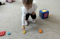 Podczas zajęć dzieci utrwalały nazwy kolorów oraz uczyły się przeliczać kasztany, rozwijając spostrzegawczość i umiejętności matematyczne . Następnie uczestniczyły w ćwiczeniach ruchowych z wykorzystaniem płynnych sensorycznych mat, które wspierały koordynację, równowagę i integrację zmysłową.