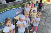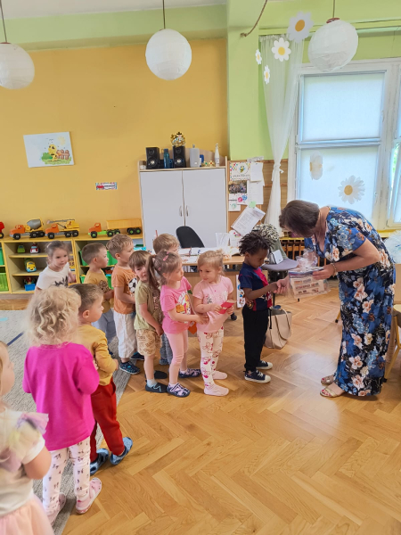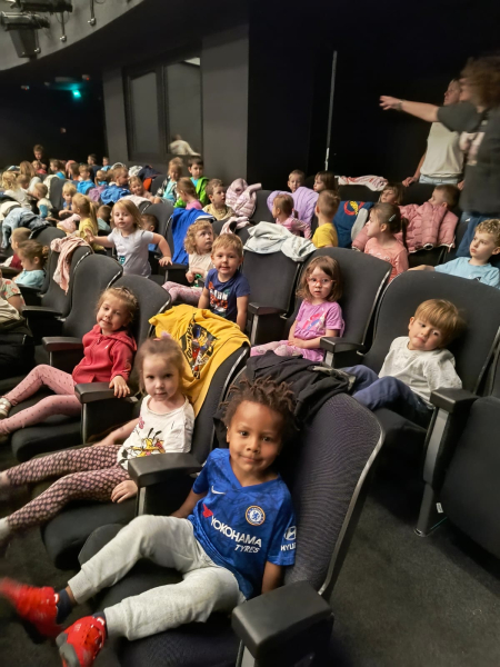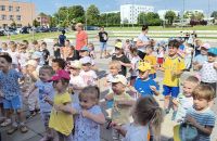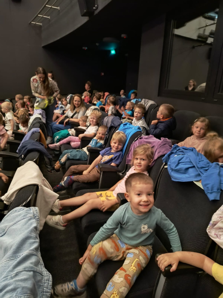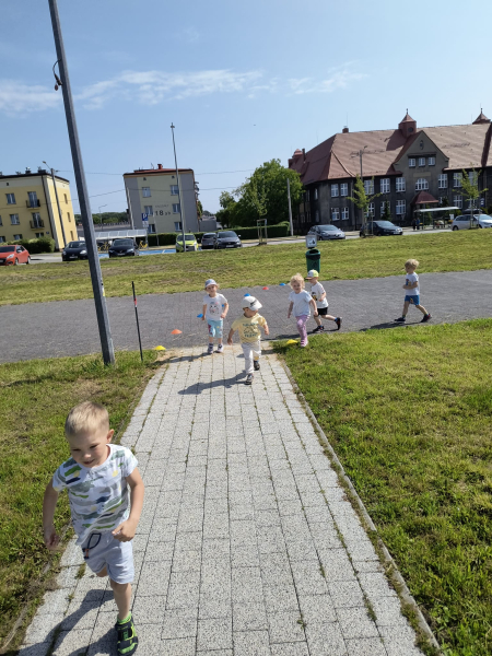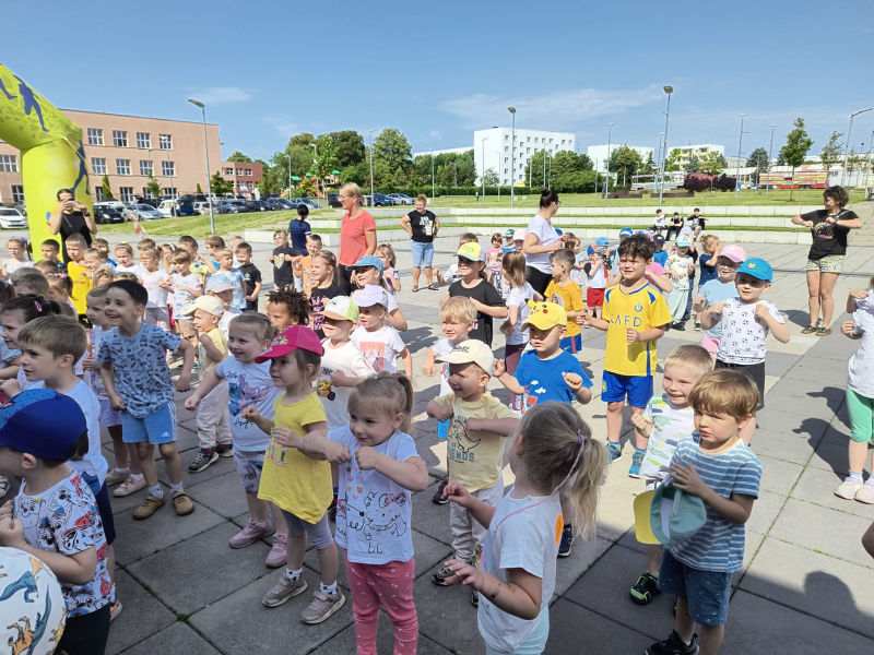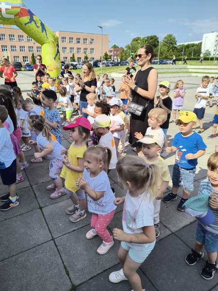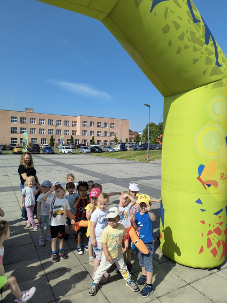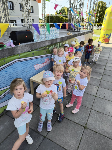 Początek czerwca upłynął pod znakiem radości i zabawy, ponieważ świętowaliśmy Dzień Dziecka! Tego dnia odwiedziła nas Pani Dyrektor, składając dzieciom serdeczne życzenia i wręczając drobne upominki. Następnie udaliśmy się do kina na pokaz bajek, gdzie największe emocje wzbudził dobrze znany i lubiany Reksio. Kolejnym punktem programu był udział w maratonie na radzionkowskim rynku – wszystkie dzieci poradziły sobie znakomicie, z wielkim zaangażowaniem pokonując trasę. Po sportowych emocjach czekał na nas owocowy, pożywny poczęstunek, który dodał energii i był miłym zakończeniem dnia. To był tydzień pełen uśmiechów, ruchu i wspólnej zabawy – na pewno długo go nie zapomnimy!
