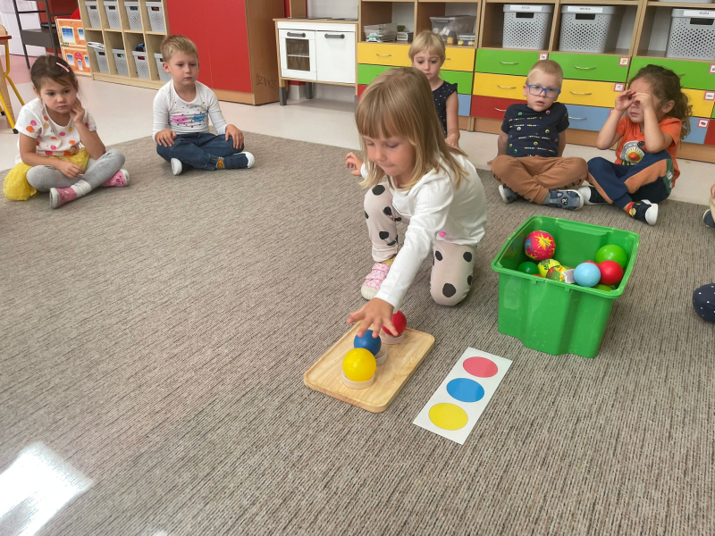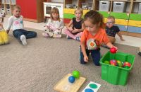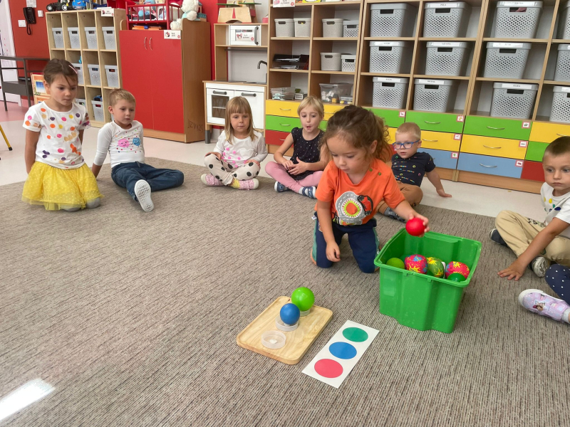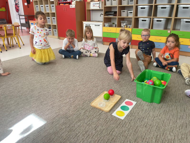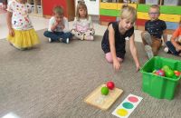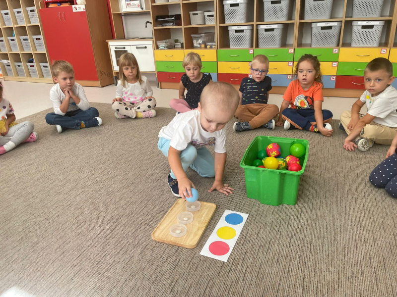 - "Ułóż kropkę" - zabawa utrwalająca znajomość kolorów,