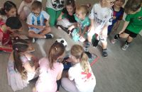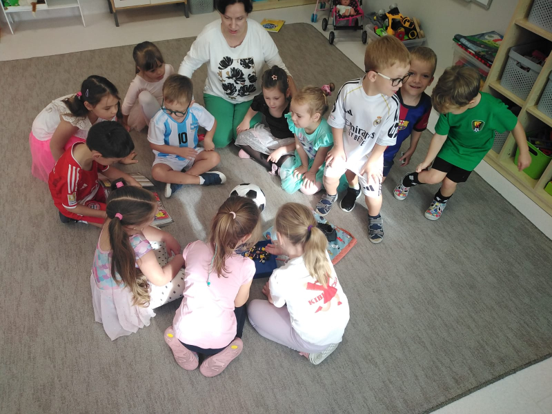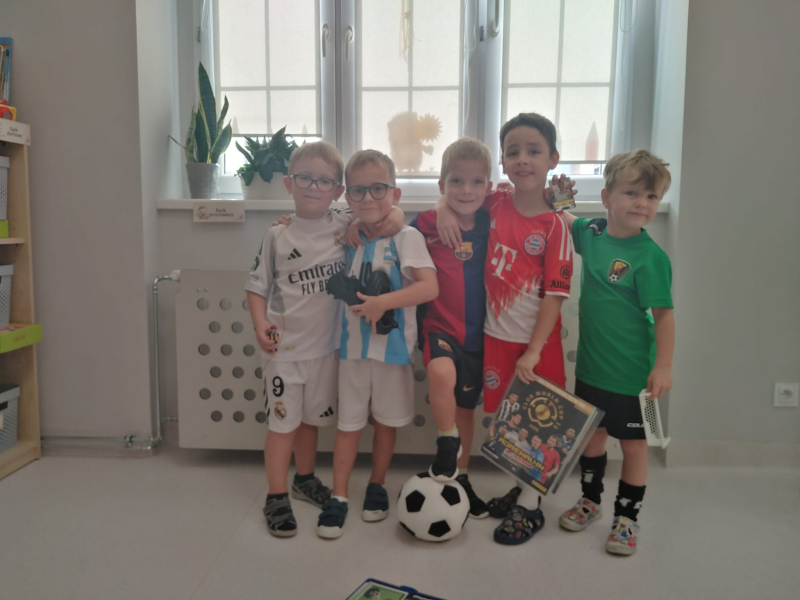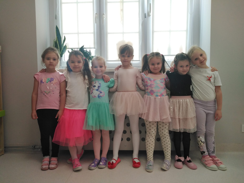 "Dzień Piłkarza i Baletnicy" w naszej grupie powstał spontanicznie. Oto w tym tygodniu mówiliśmy na temat hobby i pasji dzieci. Okazało się, że w naszej grupie mamy wielu piłkarzy (czynnych) i kibiców piłki nożnej. U dziewczynek zaś dominowała pasja do tańca - stąd nasze tancereczki i baletnice.