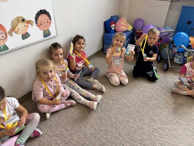 W piątek w naszym przedszkolu świętowaliśmy dziś Dzień Przedszkolaka! Z tej okazji gościliśmy dzieci z grupy Myszki. Wspólnie wybraliśmy się na plac zabaw, gdzie czekało nas mnóstwo radości i wesołych aktywności. Po powrocie uczestniczyliśmy w zabawach muzyczno–ruchowych z balonikami, które wywołały wiele uśmiechów. Następnie każdy przedszkolak mógł wykazać się kreatywnością, tworząc z balonów kolorowe potworki. Na zakończenie dnia wszyscy otrzymali pamiątkowe medale i drobne upominki. Był to wyjątkowy czas pełen śmiechu, tańca, zabawy i radosnych wspomnień – dokładnie taki, jakiego pragnie każdy przedszkolak!