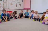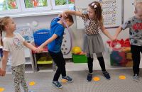 -oraz ćwiczyły współpracę, m.in. podczas zabawy z przekazywaniem hula-hoopu.