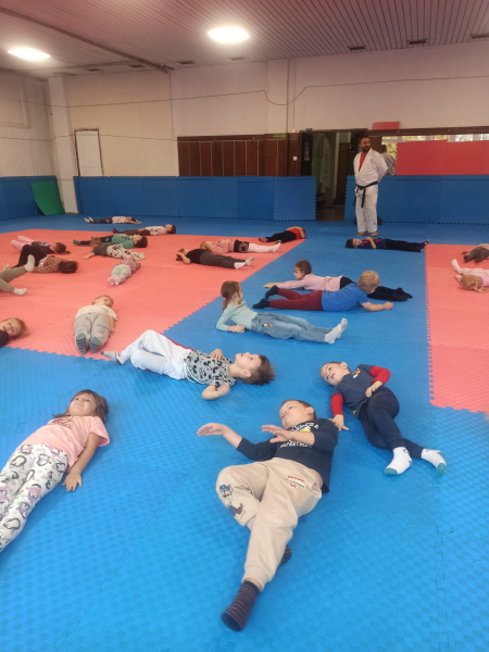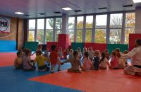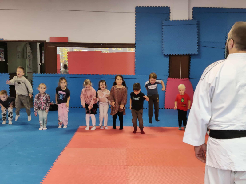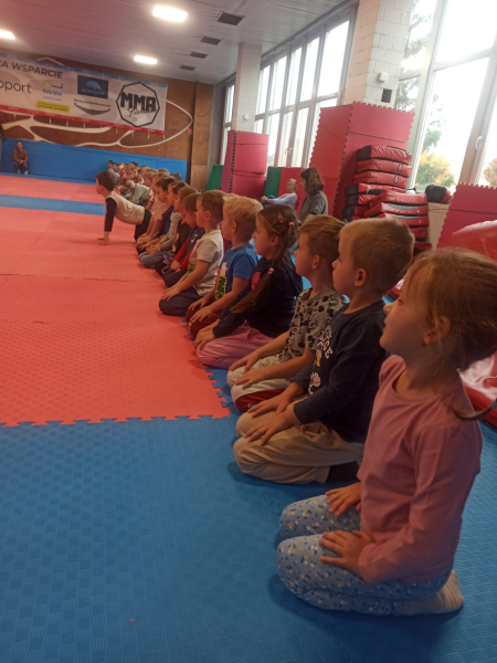Na zaproszenie klubu Judo w Radzionkowie, dzieci z grup 4, 5 i 6 - letnich miały okazję uczstniczyć w zajęciach pokazowach. Podczas spotkania przedszkolaki zobaczyły salę treningową, poznały trenera, a także wzięły udział w kilku zabawach i ćwiczeniach, które są elementem zajęć regularnych w klubie.